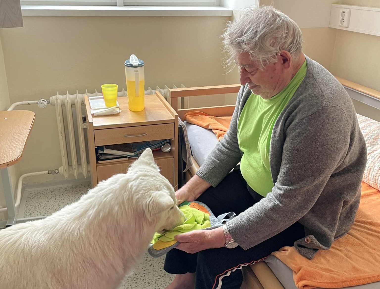Psí návštěvy v Domově probíhají letos díky projektu „Zvířecí návštěvy v zařízeních pro seniory“. Projekt je realizován za pomoci Nadačního fondu Českého rozhlasu ze sbírky Ježíškova vnoučata.