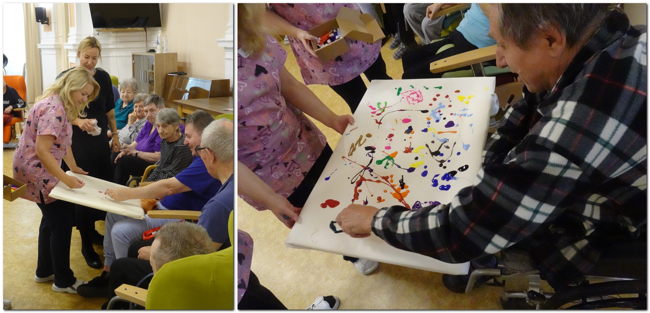 I při zaplněné jídelně se Aisha s Evou věnovaly celé dvě hodiny všem bez rozdílu. Také tentokrát si Eva připravila velmi zajímavý program: senioři společně s Aishou namalovali obraz!